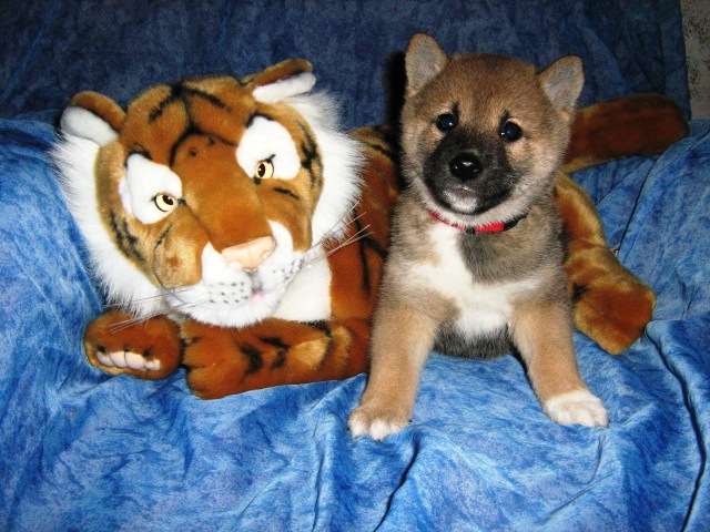 | Na, sitze ich hier nicht ganz kühn neben einem "Tiger" ? Ich reagiere typisch Shiba- mäßig. Zuerst mal schauen und überlegen und dann erst handeln. Meine Menschenfamilie hat mich durch Besuche schon vorher kennengelernt und so haben wir uns aneinder gewöhnt und bevor ich zu ihnen umgezogen bin, Schmuseeinheiten ausgetauscht. Es macht mir nun Spaß bei ihnen zu sein und mit meiner Familie auch unterwegs etwas zu erleben und den Menschen Freude zu machen. |