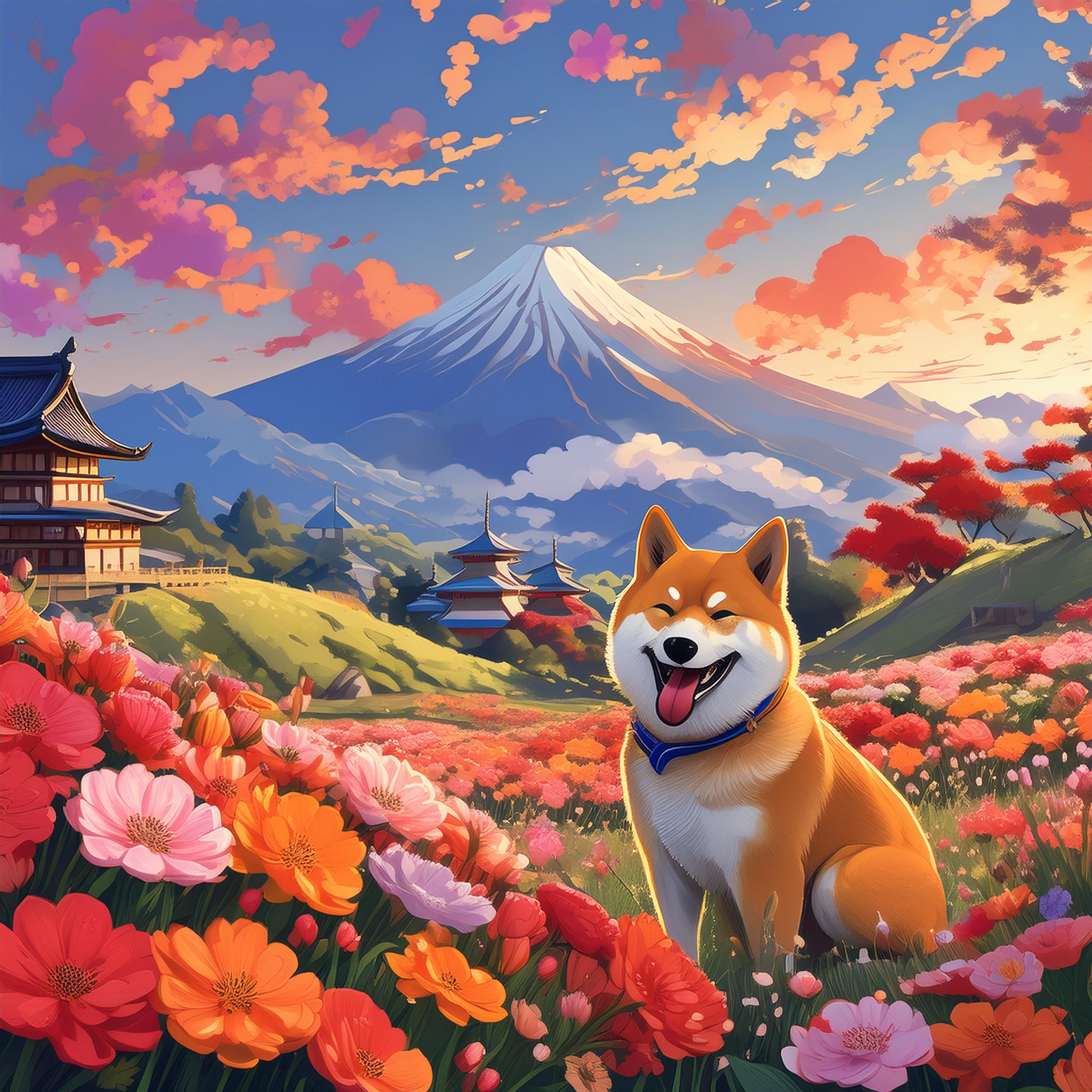 | Wir Shibas stammen urspünglich aus Japan. Dies ist ein Bild von meinem Grpßvater und Großmutter vor dem Berg ´Fuji´ dem höchsten Berg Japans |