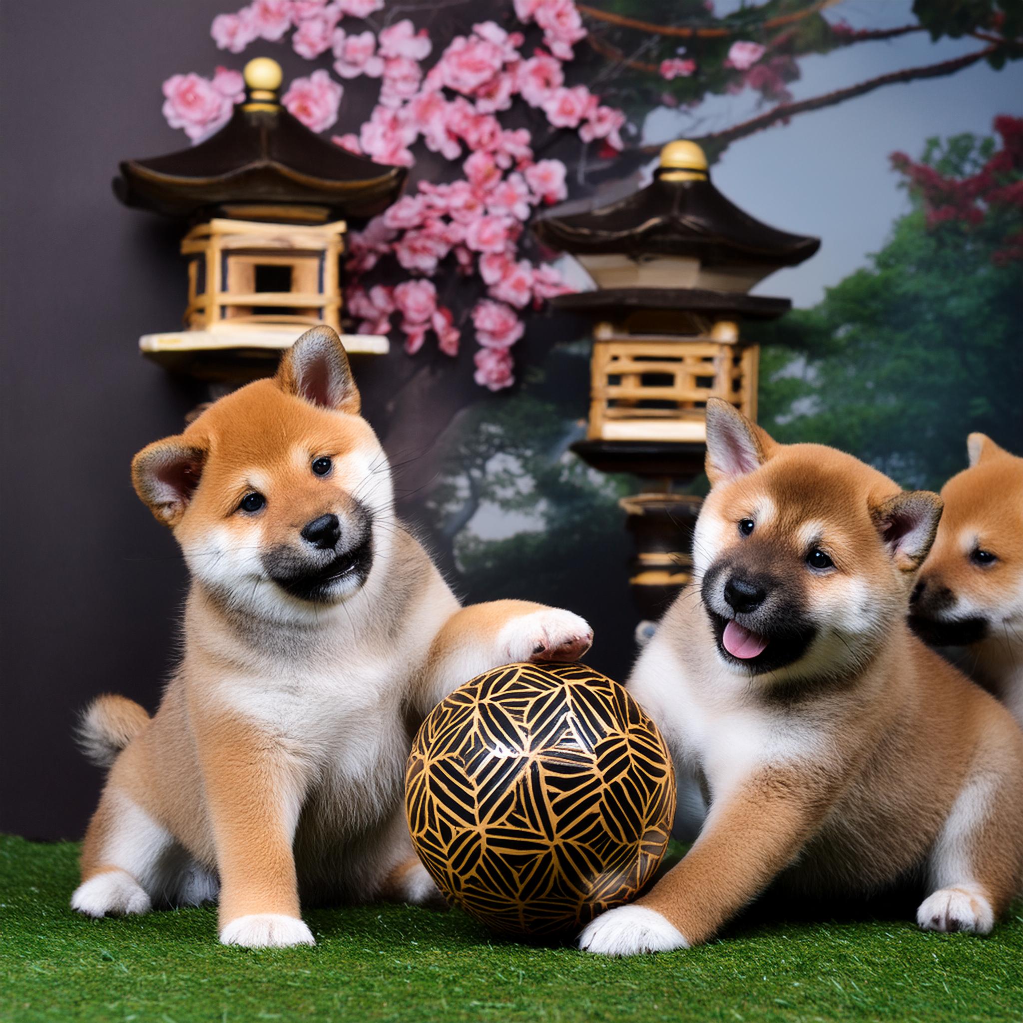 | Wir Shiba Welpen spielen gerne in der Nähe und der Ferne |