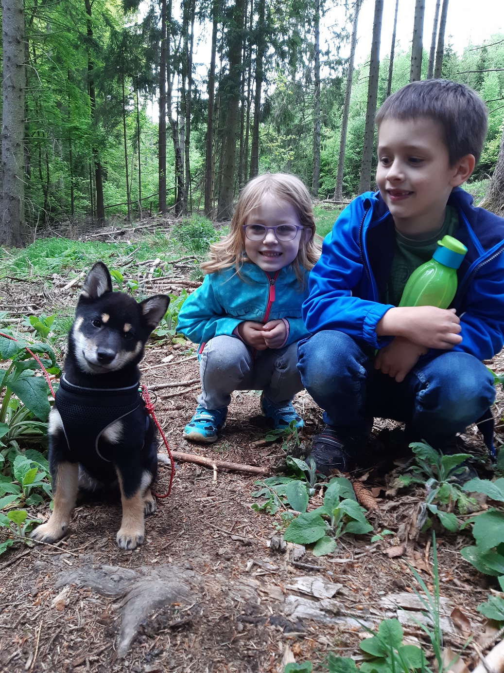 Wir lieben unsre Hundeschwester sehr und streifen gern mit ihr im Wald umher. |