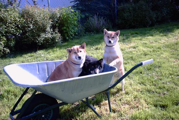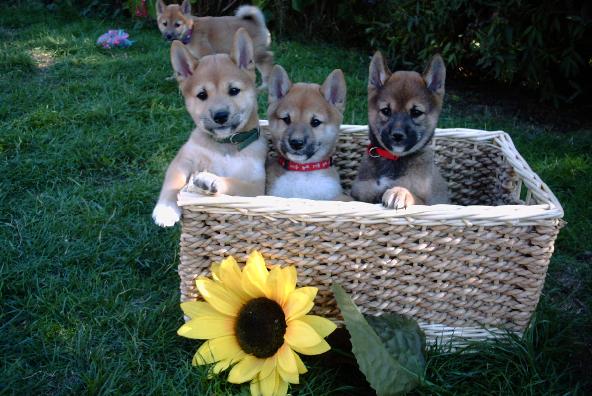 | Und wir sind nicht die Wäsche im Wäschekorb, sondern 3 Shiba Inu Babys im Alter von 8 Wochen |
